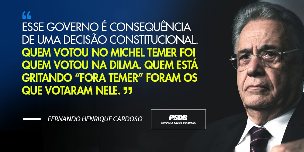 “É preciso que o governo Temer tenha rumo e firmeza. Tem que oferecer ao país uma perspectiva. A minha função, quando fui ministro da Fazenda, foi principalmente falar, explicar. Aqui, nesse momento, estamos sentindo falta de mais explicações. Por que tem que tomar medidas e o que vai acontecer. E desenhar o horizonte de esperança”, completou Fernando Henrique.