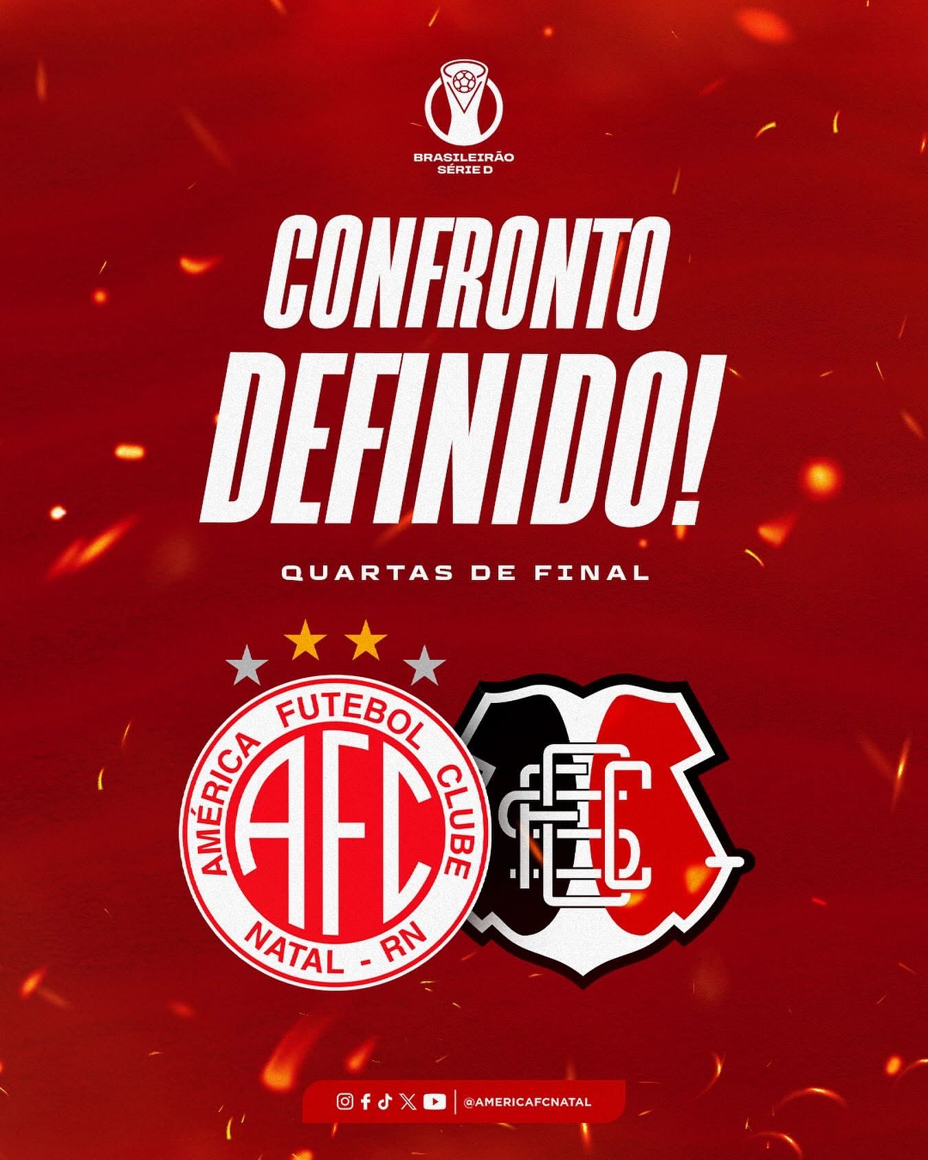 O América vai encarar o Santa Cruz-PE nas quartas de final da Série D!