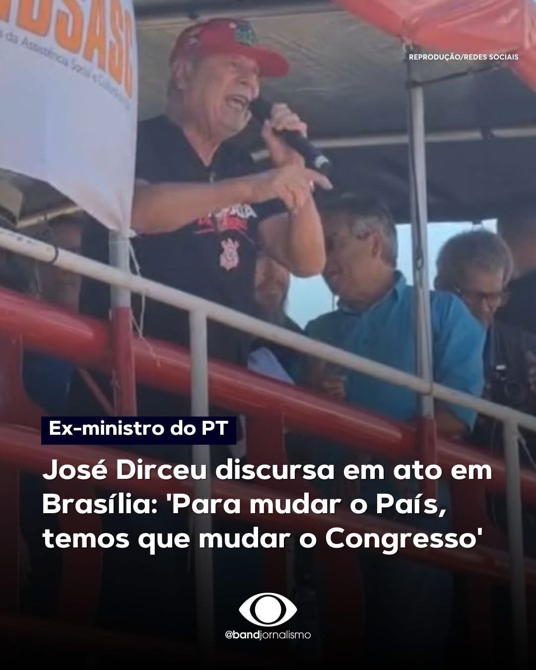 ➡️ Com a ascensão de Edinho Silva à presidência do PT, José Dirceu ganhou assento na direção do partido. O ex-ministro se articula para tentar viabilizar uma nova candidatura à Câmara em 2026. "Quero saudar cada companheiro que veio aqui com a certeza de que vamos derrotá-los e reeleger Lula", afirmou, do palanque. Dirceu foi ministro da Casa Civil, deputado federal e presidente do PT.