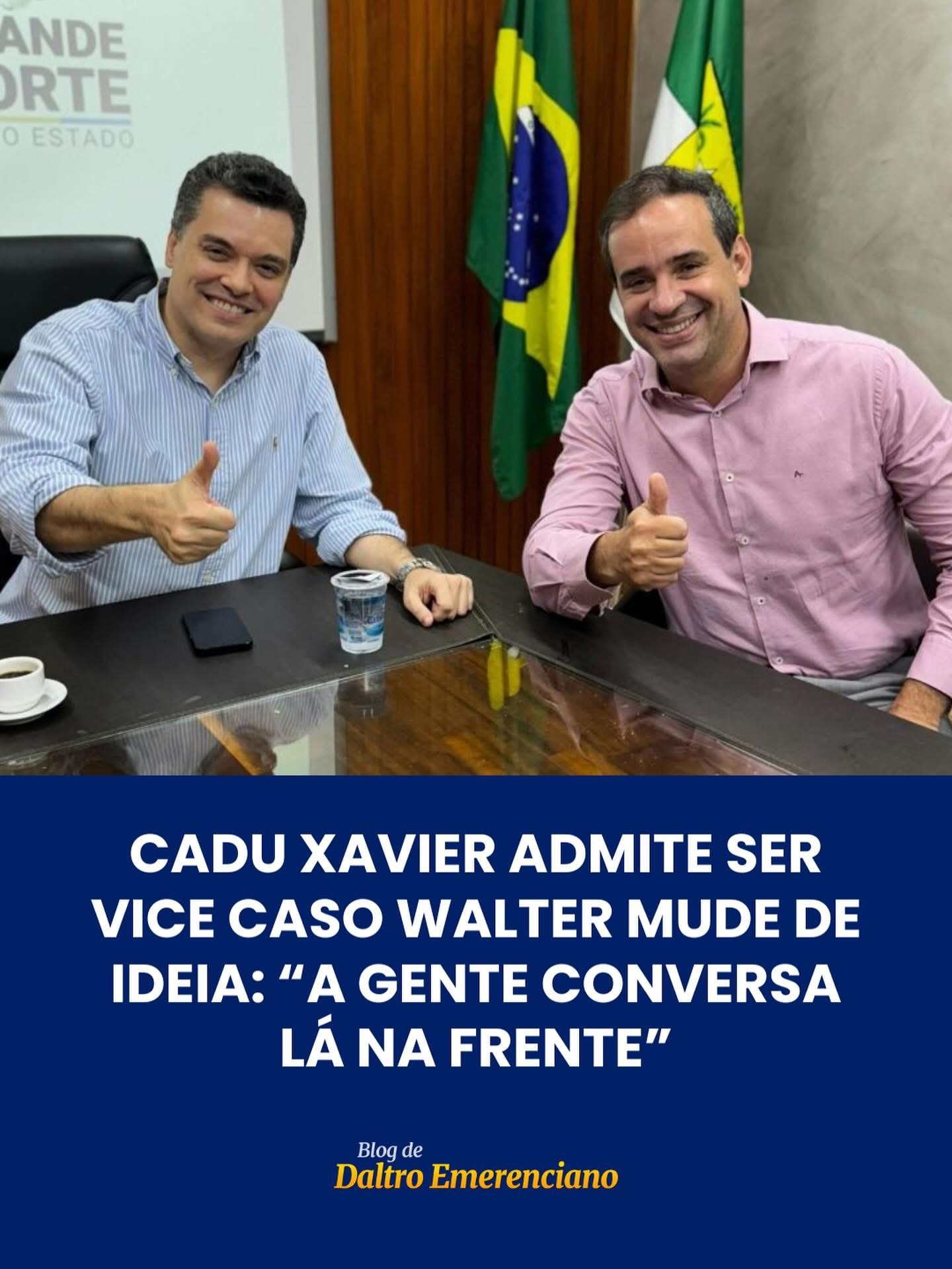 O secretário estadual de Fazenda, Cadu Xavier (PT), afirmou que sua pré-candidatura ao Governo do Rio Grande do Norte está consolidada, mas admitiu a possibilidade de ser candi-dato a vice caso o atual vice-governador, Walter Alves (MDB), mude de ideia e decida dispu-tar a reeleição após assumir o cargo de governador em 2026.