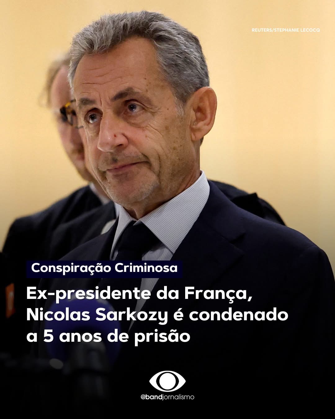 A Justiça da França condenou o ex-presidente Nicolas Sarkozy a cinco anos de prisão por conspiração criminosa nesta quinta-feira (25). A acusação diz respeito ao financiamento ilegal de sua campanha eleitoral em 2007.