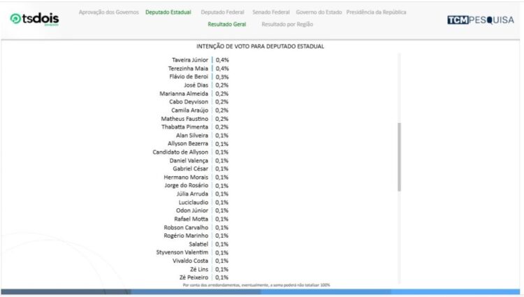 A pesquisa TCM/TSDois traz, nesta quarta-feira (29), a segunda rodada de intenção de votos para Deputado Estadual considerando as eleições de 2026.