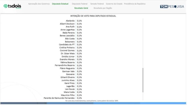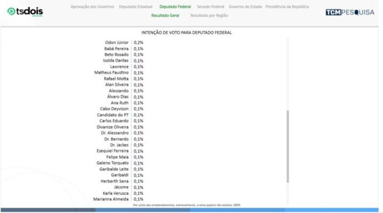 A pesquisa TCM/TSDois traz, nesta quarta-feira (29), a segunda rodada de intenção de votos para Deputado Federal considerando as eleições de 2026.