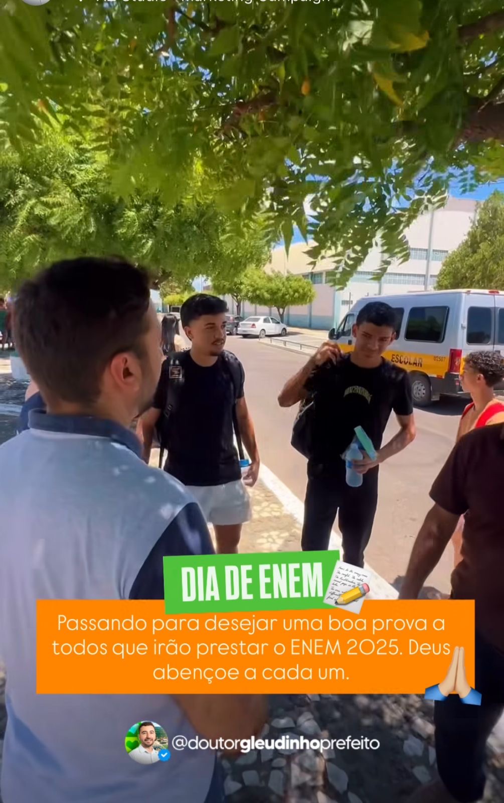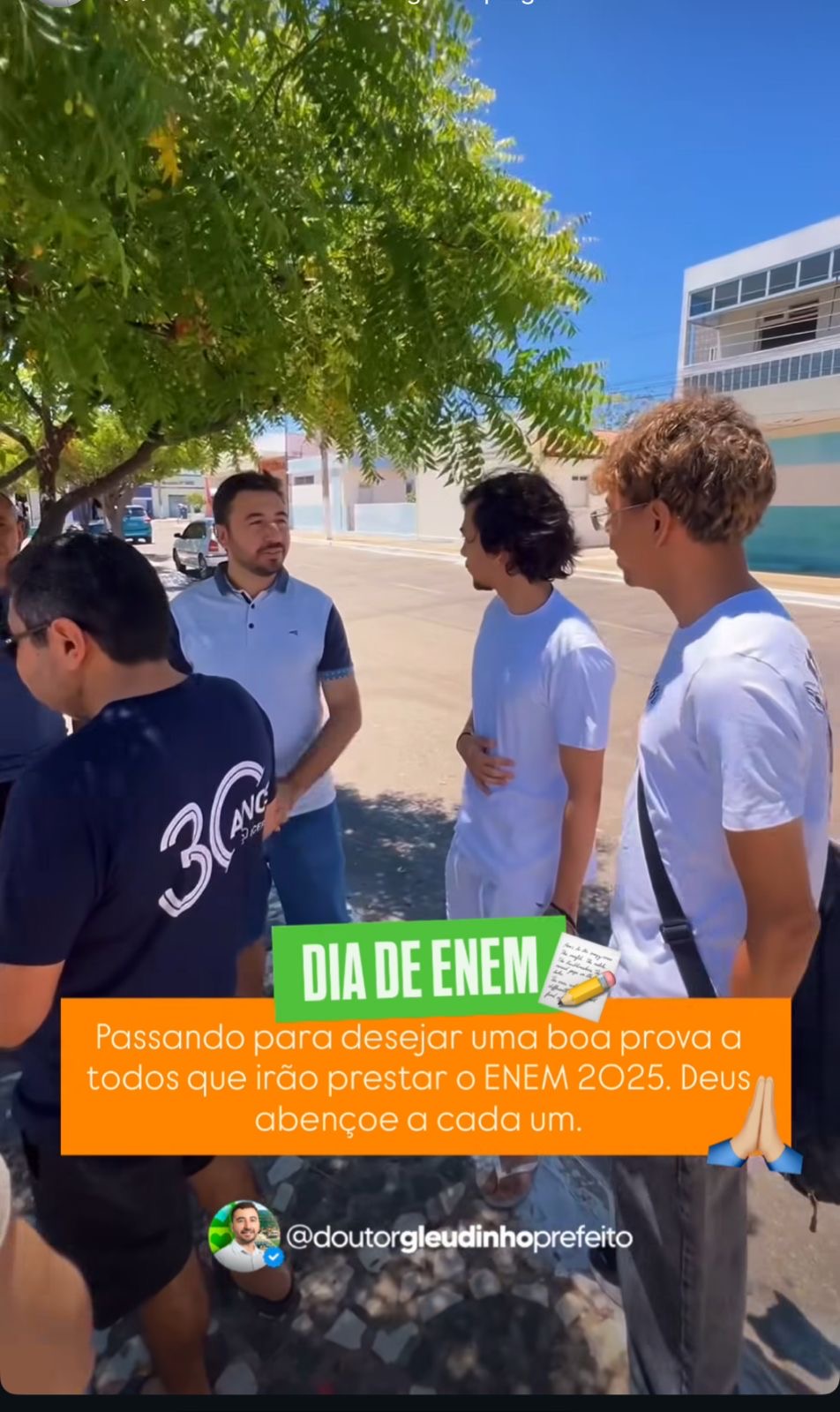 O prefeito Dr. Gleudinho esteve presente hoje, desejando uma prova tranquila aos alunos e deixando palavras de incentivo.