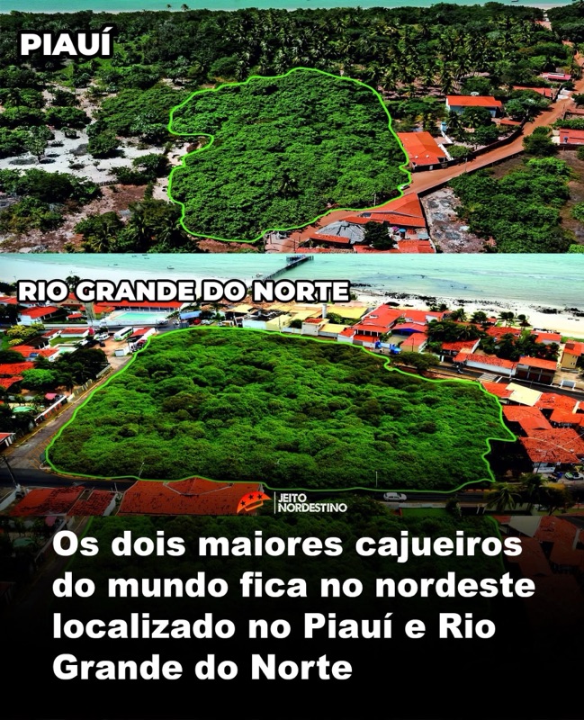 O Cajueiro Gigante em Parnamirim no Rio Grande do Norte tem aproximadamente 8.500 m². Segundo nativos, teria sido plantado em 1888 por um pescador chamado Luís Inácio de Oliveira. O tronco principal divide-se em cinco galhos, quatro desses galhos sofreram alteração genética, e criaram raízes e troncos que deram origem ao gigantismo da árvore.