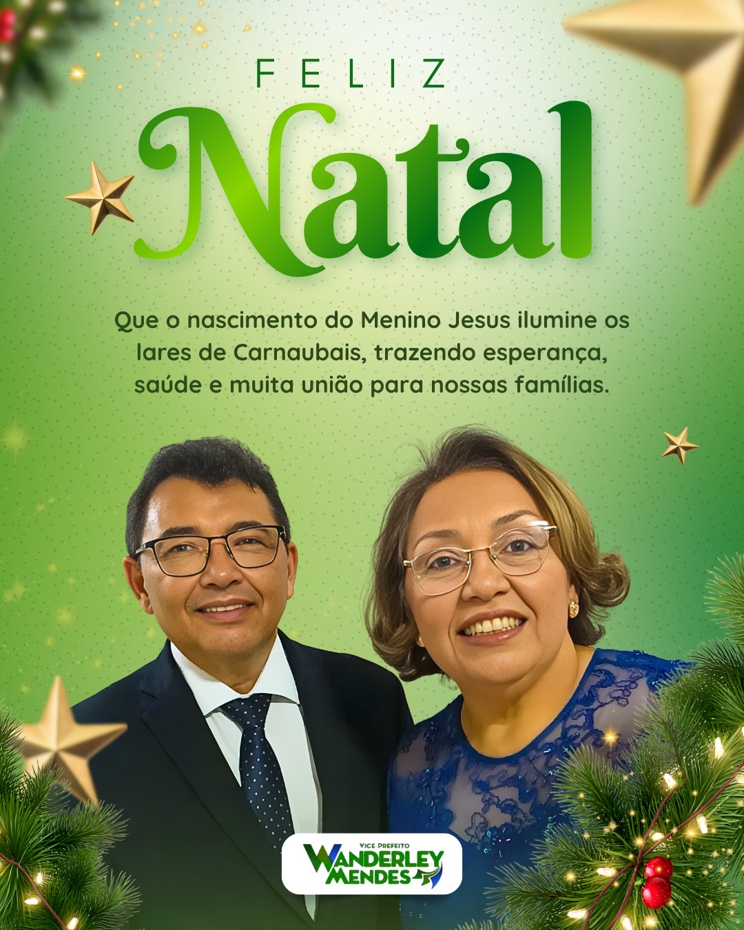 Neste Natal, quero desejar a todas as famílias de Carnaubais um tempo de paz, fé e renovação. Que o nascimento de Jesus Cristo fortaleça nossos corações com esperança, amor ao próximo e solidariedade.
