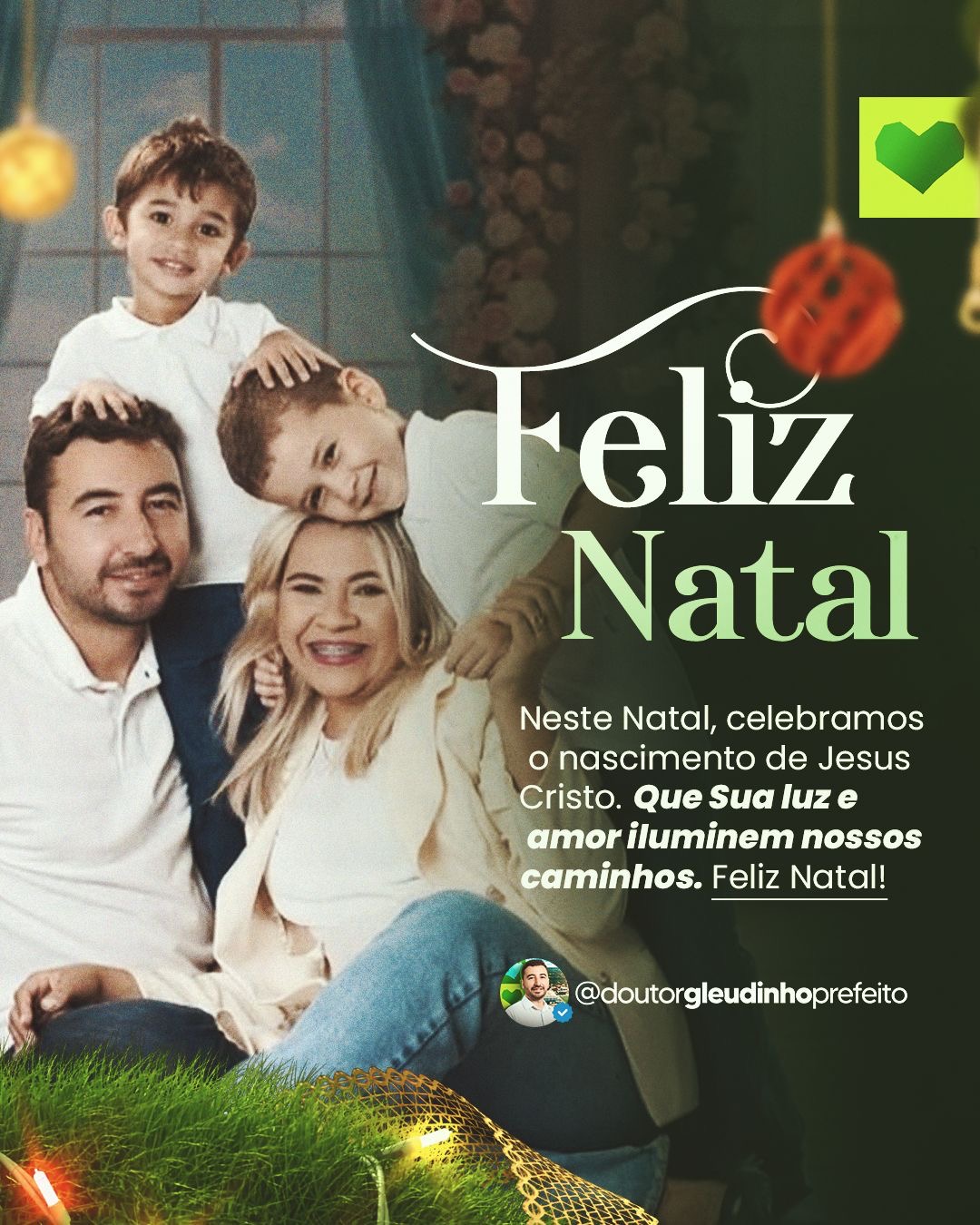 Desejo a todas as famílias carnaubaenses um Natal de luz, amor e harmonia, e que o Ano Novo seja repleto de novas oportunidades, prosperidade e realizações.
