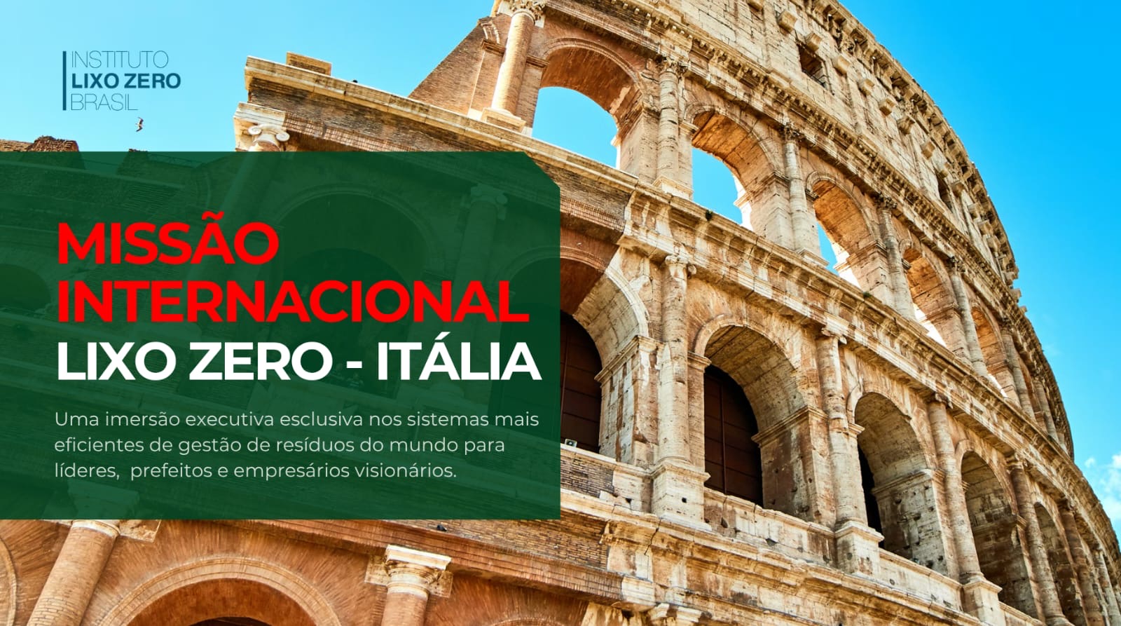 O Instituto Lixo Zero Brasil tem a honra de convidar esta Associação / Consórcio Intermunicipal de Gestão de Resíduos para participar da Capacitação Internacional Cidades Lixo Zero – Missão Técnica Itália 2026, um programa de formação voltado a gestores públicos e técnicos responsáveis pelo planejamento e operação dos sistemas de gestão de resíduos.