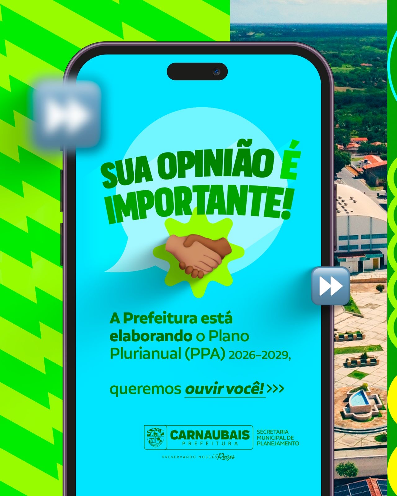 A Prefeitura está elaborando o Plano Plurianual (PPA) 2026–2029, e queremos ouvir você, morador e moradora que conhece de perto a realidade da nossa cidade.