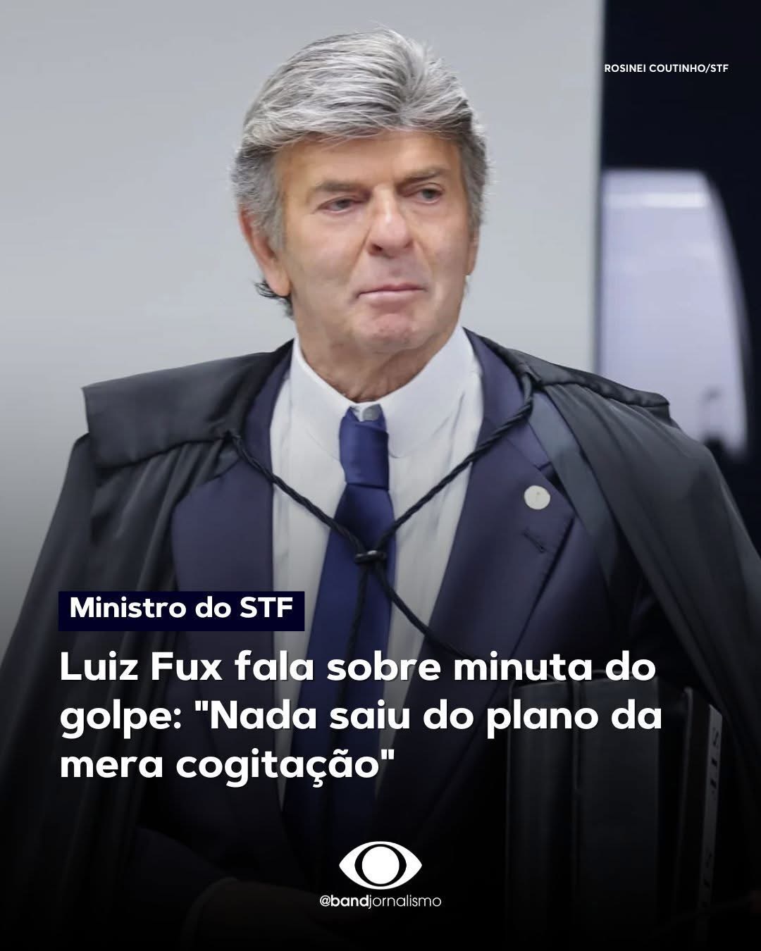 “Esta minuta em registros fotográficos, com aquele papel cobrindo, não previa a prisão de autoridades ou a convocação de novas eleições. É de se reiterar os termos que Freire Gomes utilizou para se referir à minuta apresentada na reunião em questão, limitada aos considerados, afirmando que era muito superficial”, finaliza Luiz Fux.