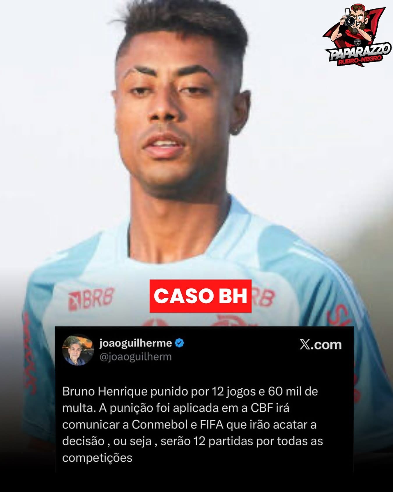 Bruno Henrique foi punido pelo STJD com 12 jogos de suspensão e multa de R$ 60 mil. A decisão será comunicada pela CBF à Conmebol e à FIFA, que podem acatar a medida e estender a punição para competições internacionais.