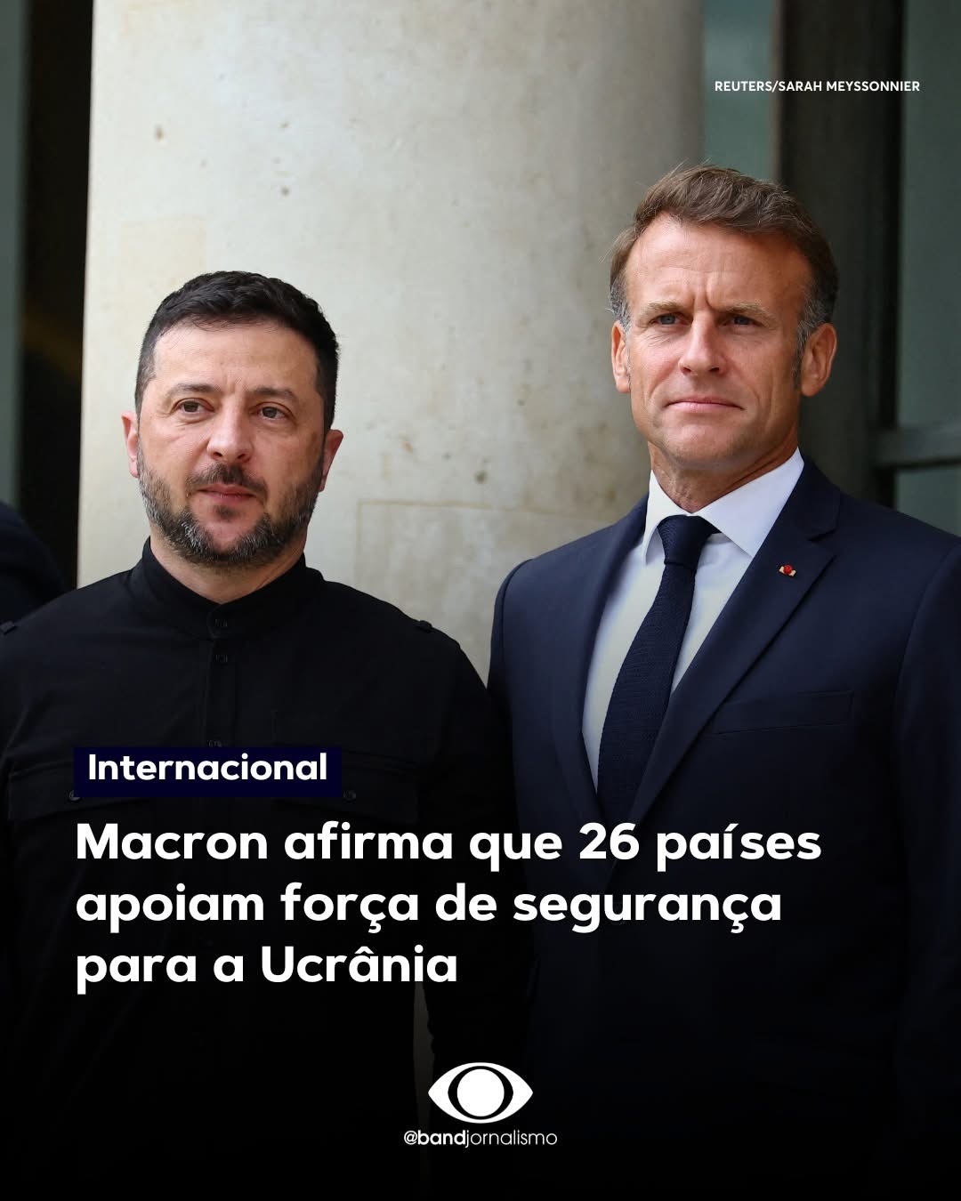 Vinte e seis países se comprometeram a apoiar a criação de uma força de segurança que seria enviada à Ucrânia após um eventual acordo com a Rússia que encerre a guerra, com o objetivo de impedir que Moscou volte a atacar seu vizinho, afirmou o presidente francês, Emmanuel Macron, nesta quinta-feira (4).