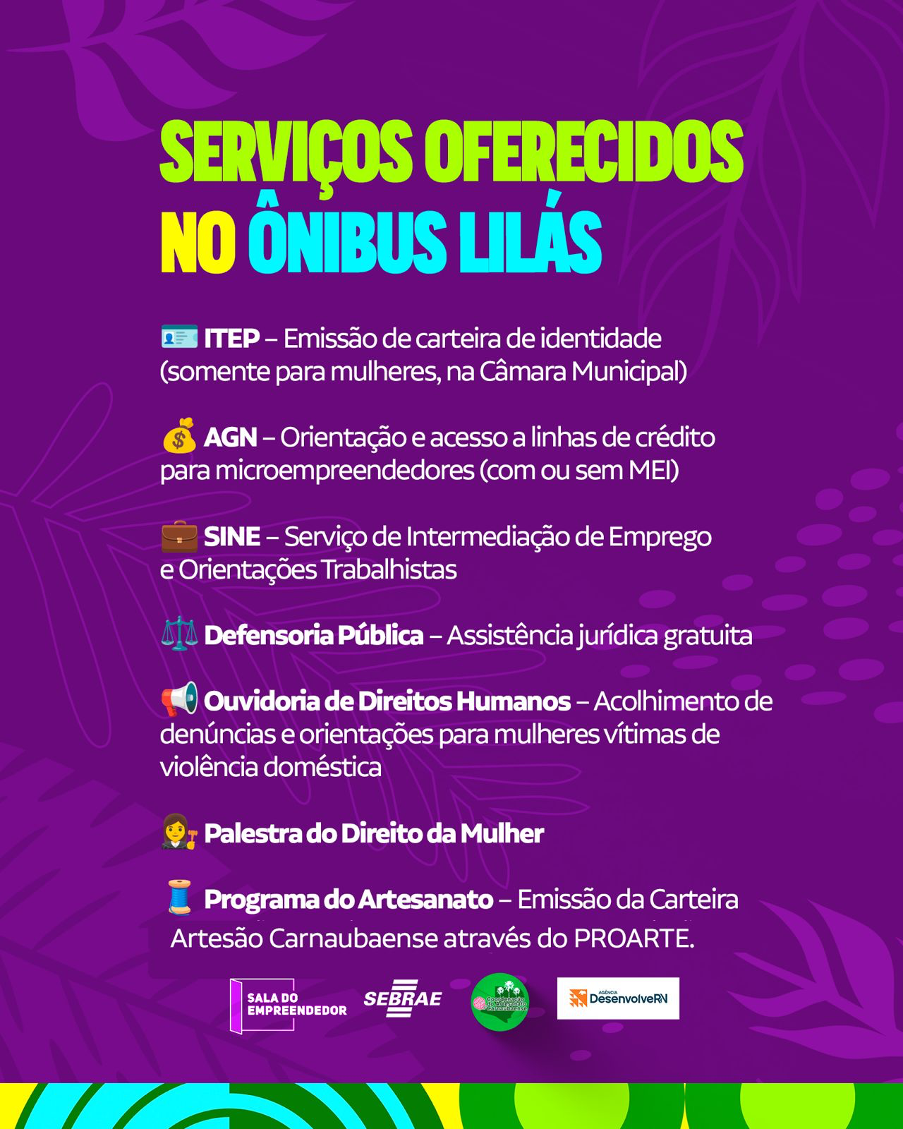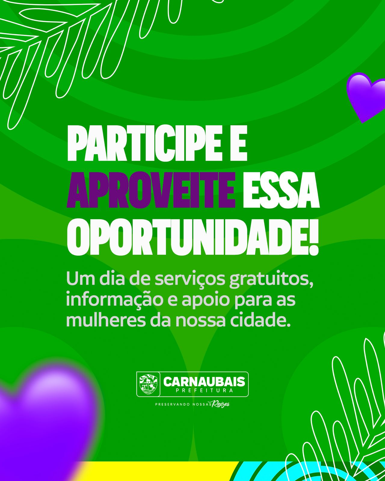 A Prefeitura de Carnaubais, em parceria com a SEMMIR e SEMJIDH, traz o projeto Maria Vai à Cidade para oferecer um dia inteiro de serviços gratuitos, informação e apoio às mulheres.