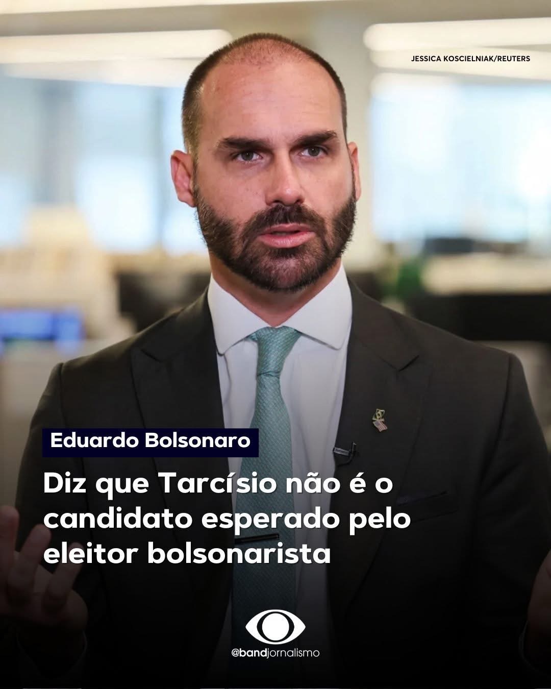 O deputado federal Eduardo Bolsonaro (PL-SP) afirmou que o governador de São Paulo, Tarcísio de Freitas (Republicanos), não é o candidato esperado pelos bolsonaristas. Para o filho do ex-presidente Jair Bolsonaro (PL), "o perfil do Tarcísio, realmente, não é de combate esse de establishment", uma vez que o governador "tem pessoas, no seu primeiro escalão e secretarias, que são ligadas ao PSOL e ao PT". A declaração foi dada nesta segunda-feira, 1º, em entrevista ao canal Claudio Dantas, no YouTube.