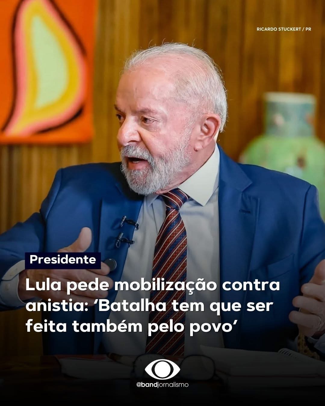 O presidente Luiz Inácio Lula da Silva (PT) declarou nesta quinta-feira (4) que vê risco do Congresso aprovar o projeto de anistia e pediu a mobilização de apoiadores contra a proposta.