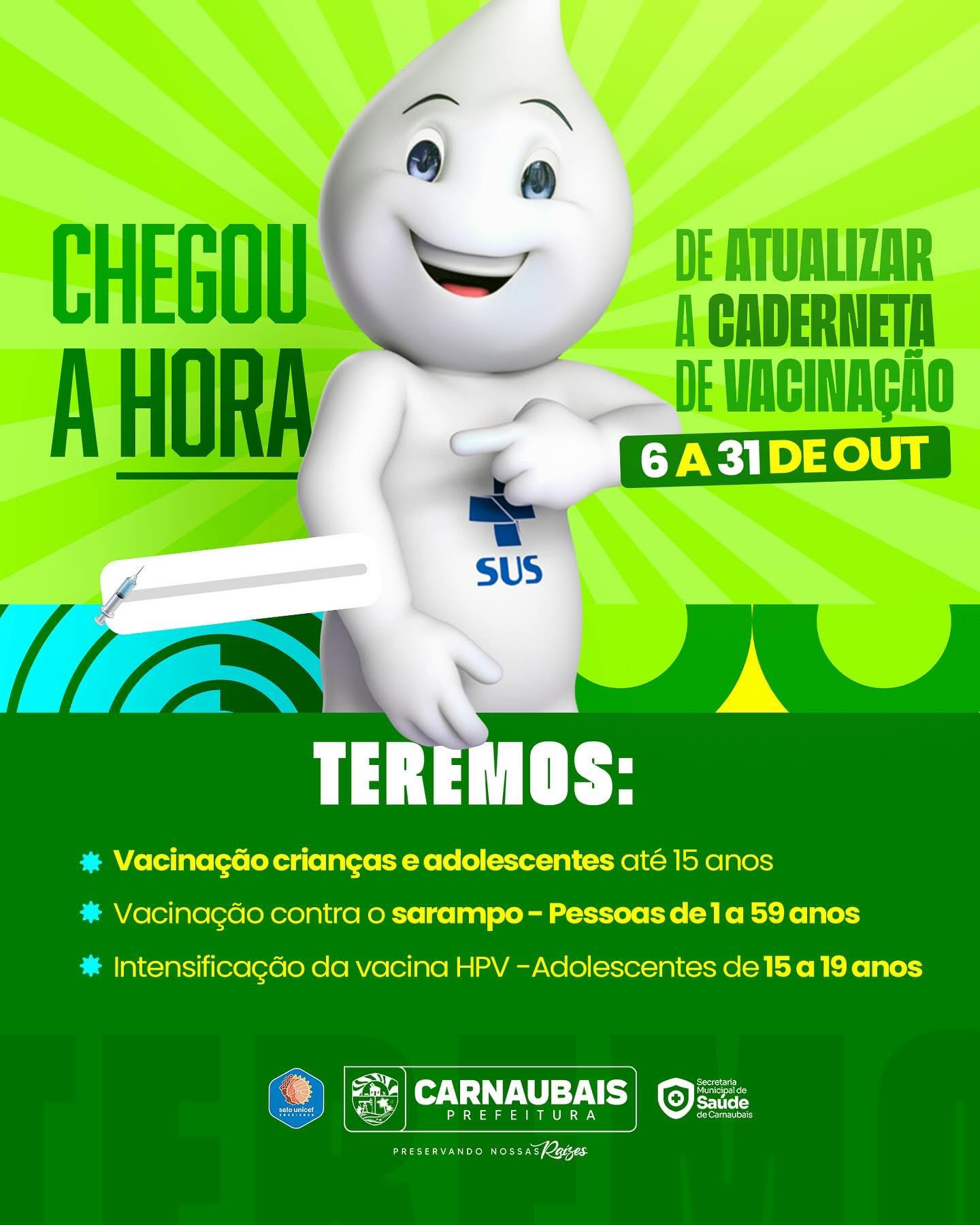 De 6 a 31 de outubro, teremos a campanha de atualização da caderneta de vacinação em Carnaubais. 🗓️