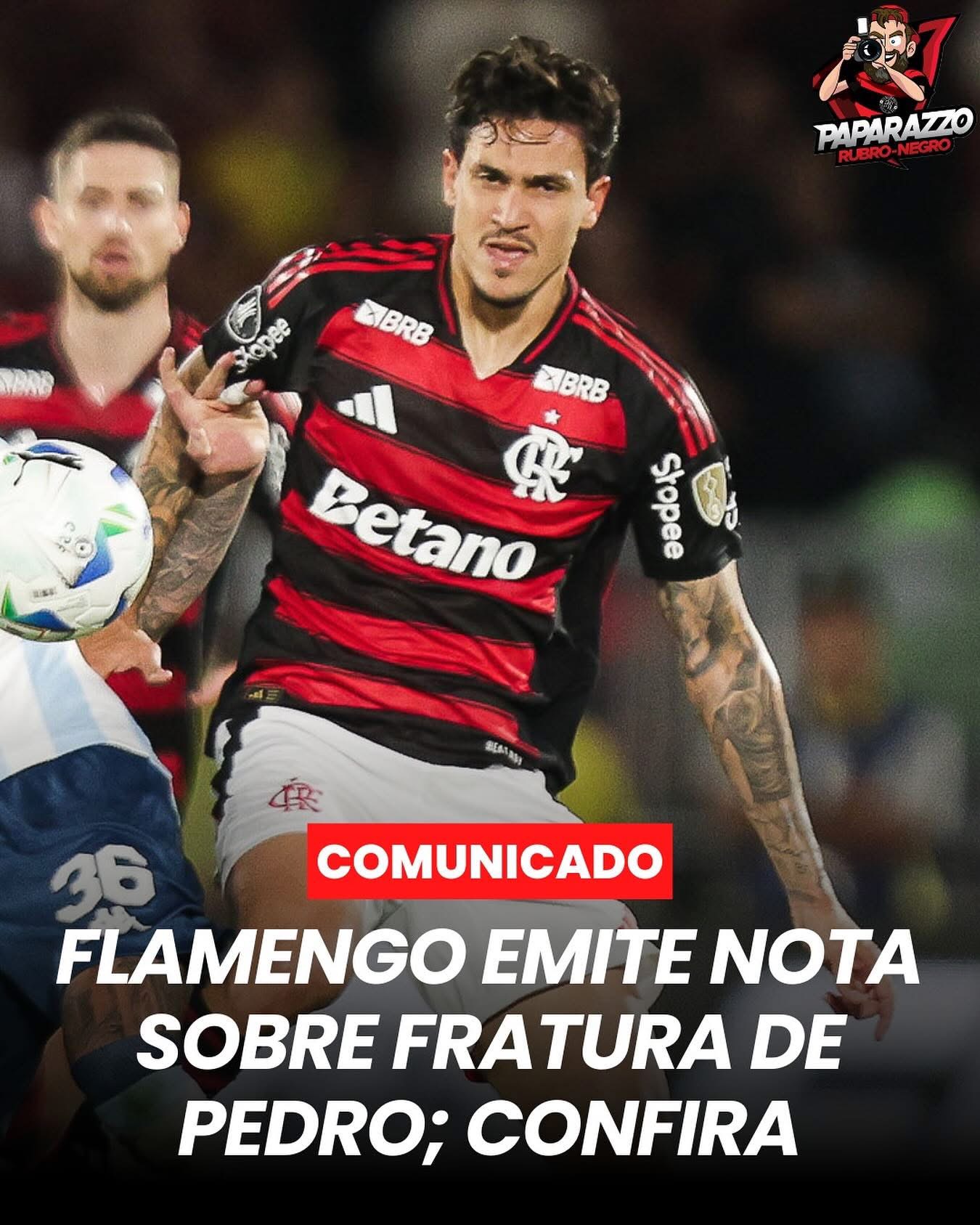 “Substituído com dores no braço direito no segundo tempo de Flamengo 1 x 0 Racing, em jogo válido pela CONMEBOL Libertadores, o atacante Pedro passou por exames de imagem ainda na madrugada desta quinta-feira (23). O laudo apontou fratura sem desvio na ulna. O jogador será reavaliado hoje pelo Departamento Médico do clube para estabelecer o planejamento de recuperação.”