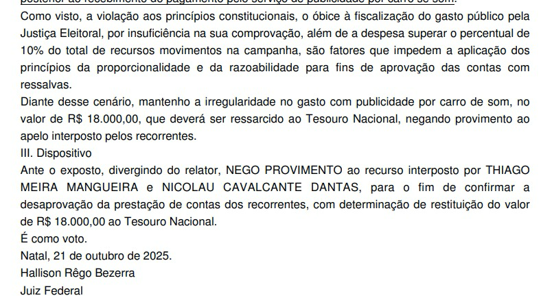 Irregularidades das contas de campanha de DR. Thiago Meira e Nicolau Cavalcante foram reprovadas!