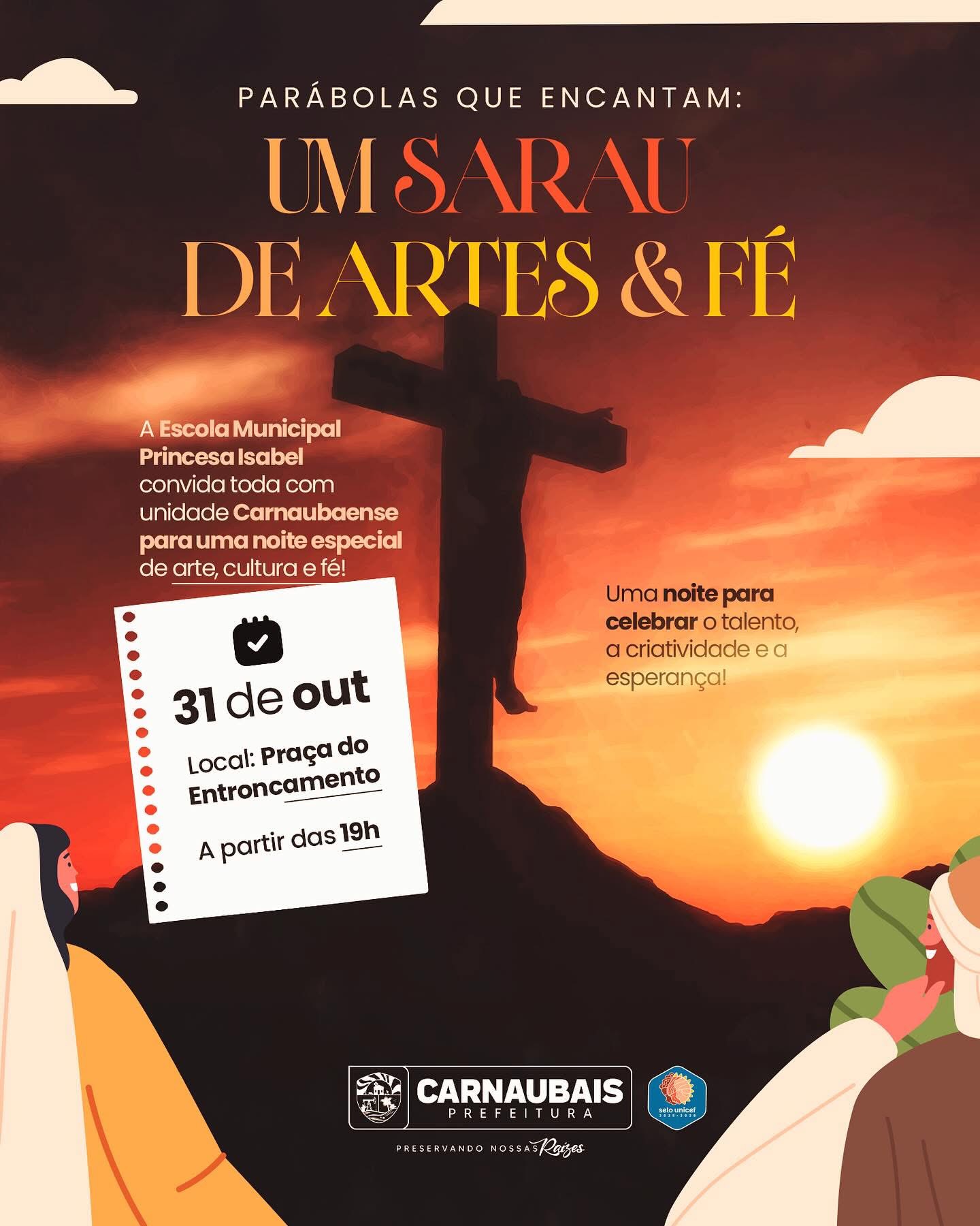 A Escola Municipal Princesa Isabel convida toda comunidade Carnaubaense para uma noite especial de arte, cultura e fé! 🌟