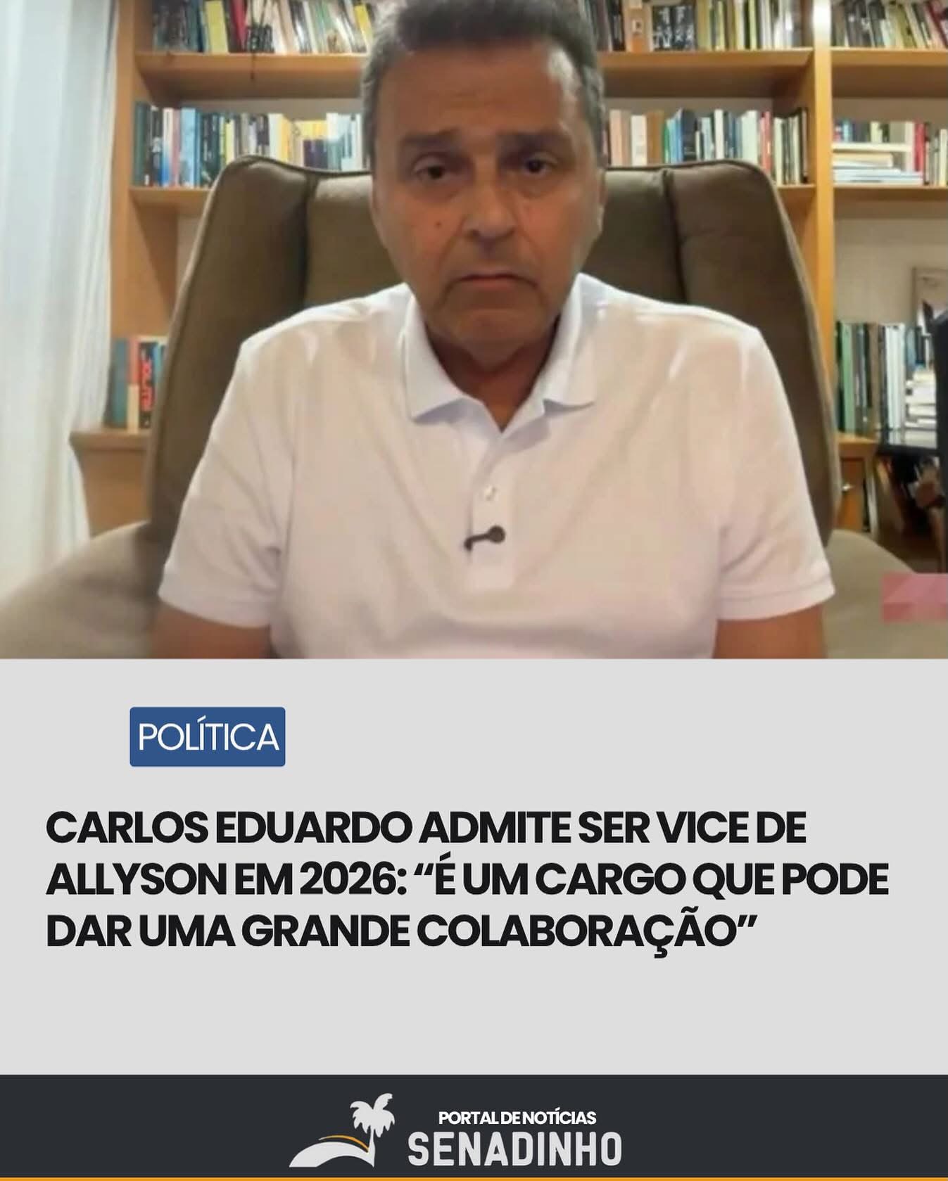 Durante a entrevista, Carlos Eduardo disse que quer ter o nome testado em pesquisas como pré-candidato tanto ao Governo do Estado quanto ao Senado, mas não descartou disputar outro cargo. “Eu prefiro que o meu nome seja examinado tanto para o Governo quanto para o Senado, para que no próximo ano a gente possa discutir Senado, suplência, governador, vice”, declarou.