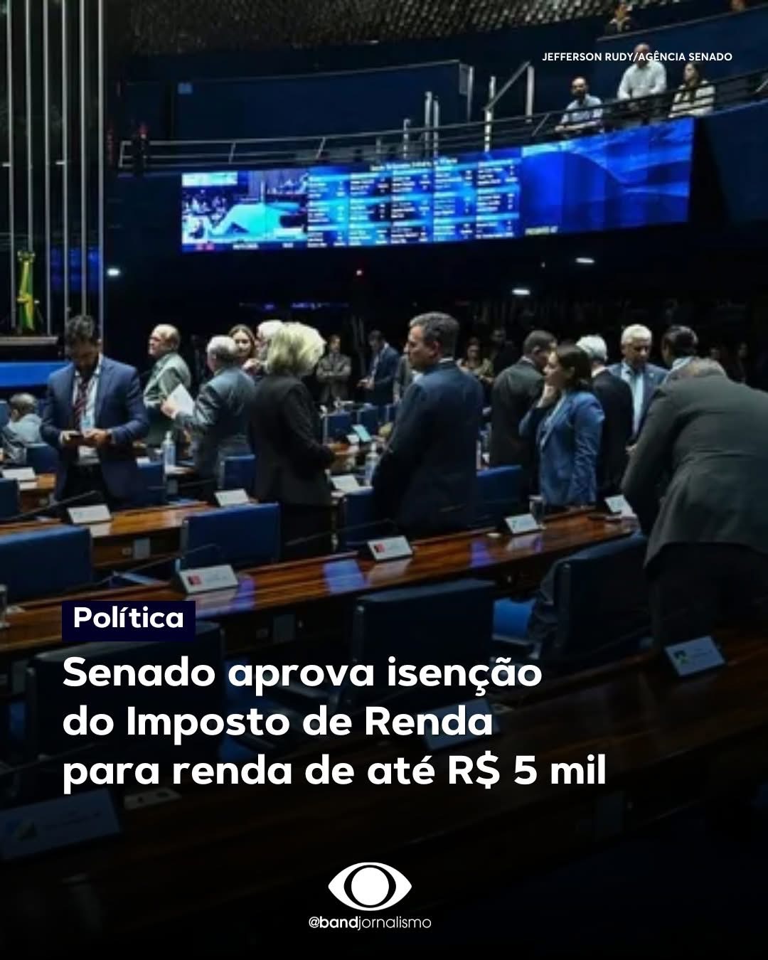 O plenário do Senado aprovou nesta quarta-feira (05) o projeto de lei que isenta de Imposto de Renda quem ganha até R$ 5.000 mensais. Para compensar a perda de receita, o projeto, de autoria do governo, cria um imposto mínimo para quem ganha mais de R$ 50 mil por mês.