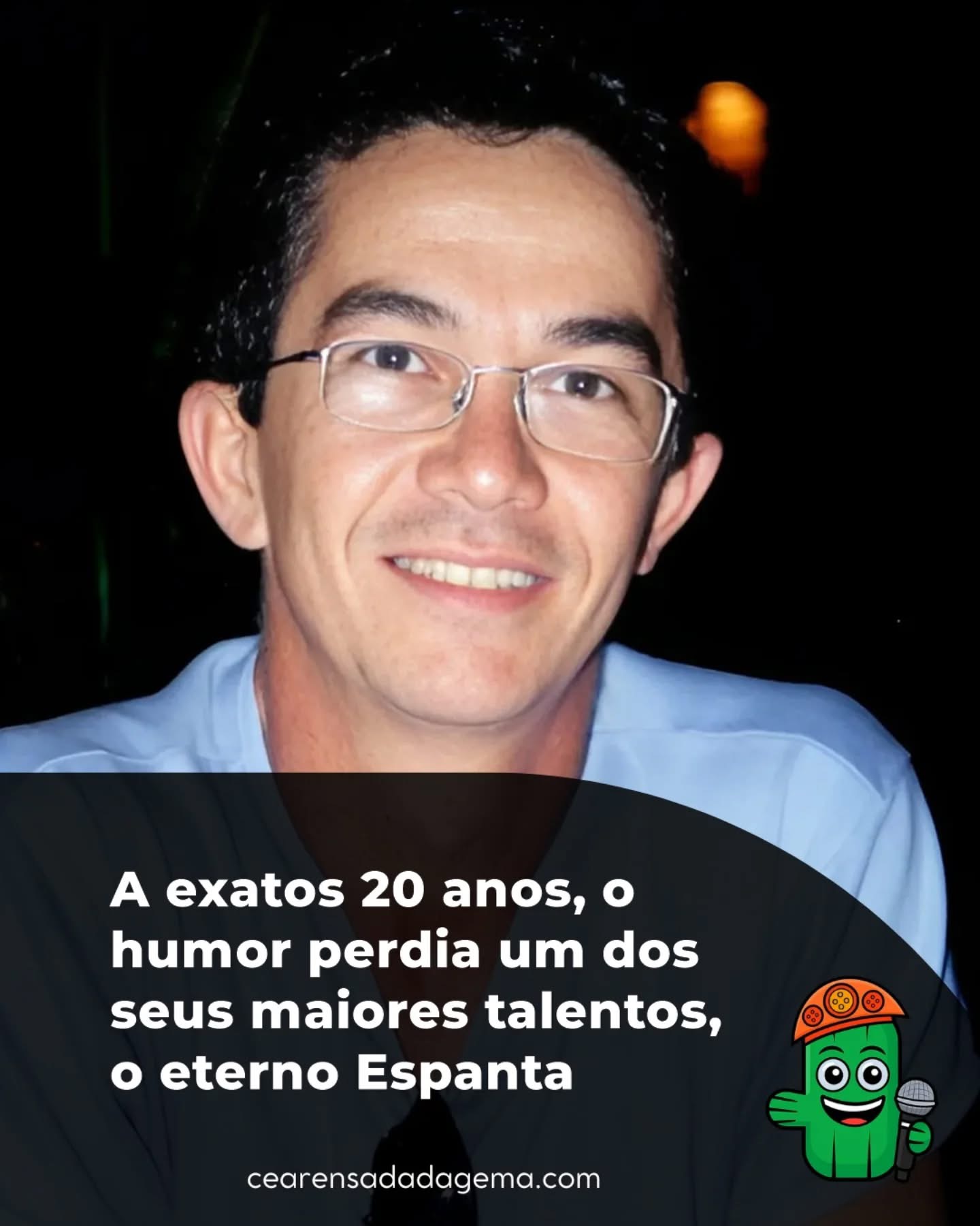 Há exatas duas décadas, o humor brasileiro perdia David Cunha, o potiguar que ficou nacionalmente conhecido como Espanta. Nascido em Natal e reconhecido como um dos maiores intérpretes de piadas do país, ele conquistou público e crítica com seu estilo rápido, espontâneo e irreverente.