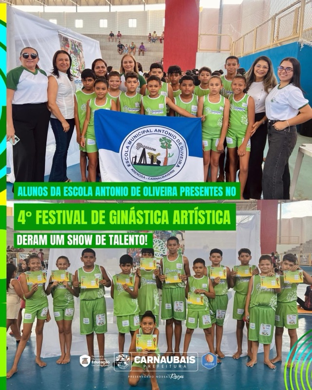 A Prefeitura de Carnaubais participou da 4ª edição do Festival de Ginástica Artística com os alunos do tempo integral da Escola Municipal Antônio de Oliveira, encantando o público com apresentações cheias de dedicação, alegria e disciplina.