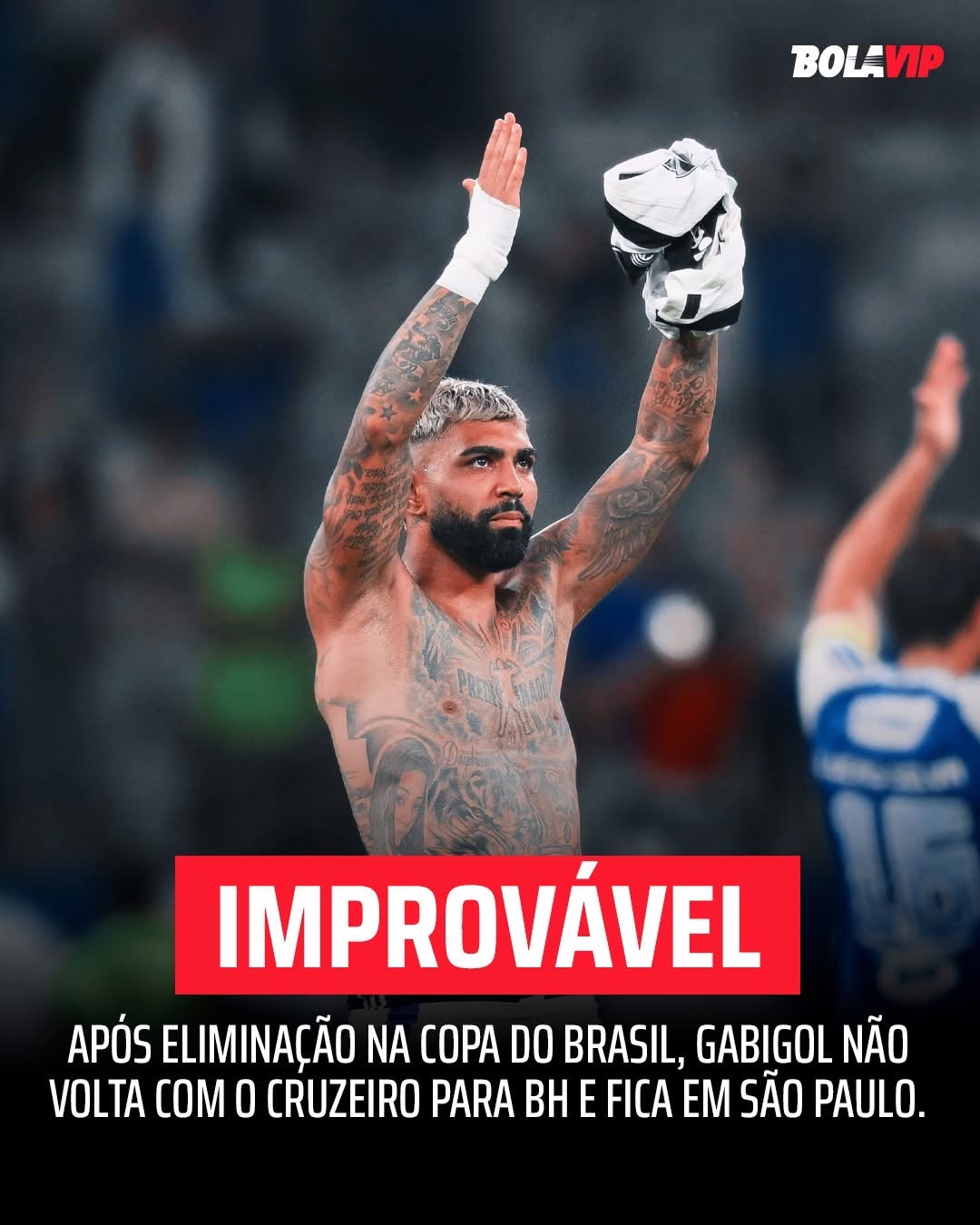 ℹ️ Diferentemente do restante da delegação cruzeirense, que retornou para Belo Horizonte em voo fretado, Gabriel Barbosa permaneceu em SP após a derrota da Raposa para o Corinthians, nos pênaltis, pela semifinal da Copa do Brasil.
