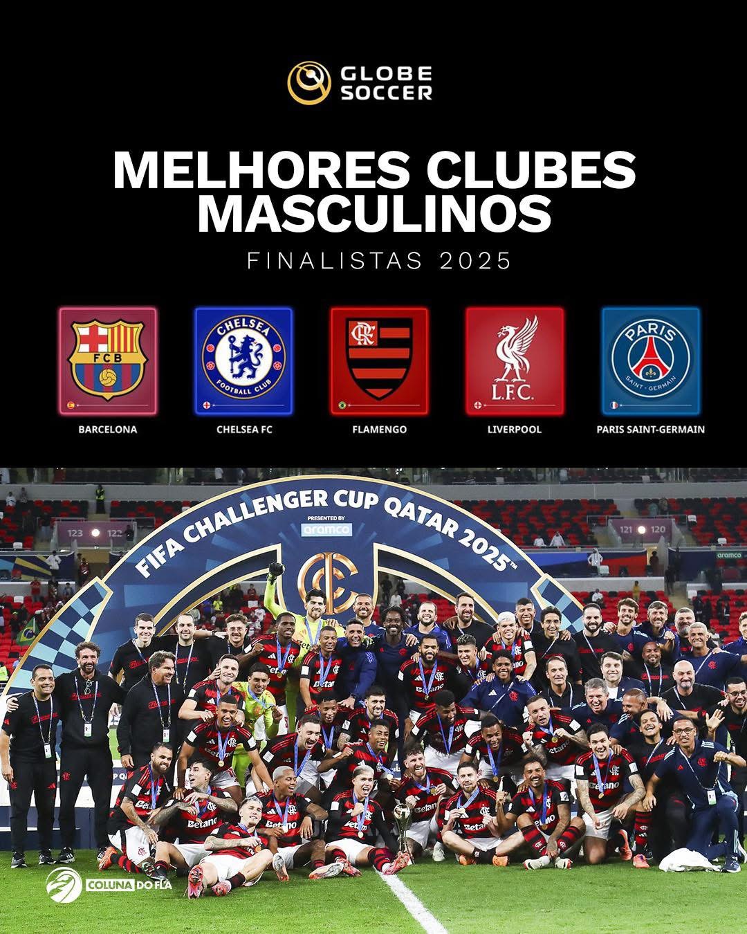 Flamengo é finalista da Globe Soccer Awards na categoria de melhor time masculino do mundo! PSG, Barcelona, Chelsea e Liverpool estão na disputa.