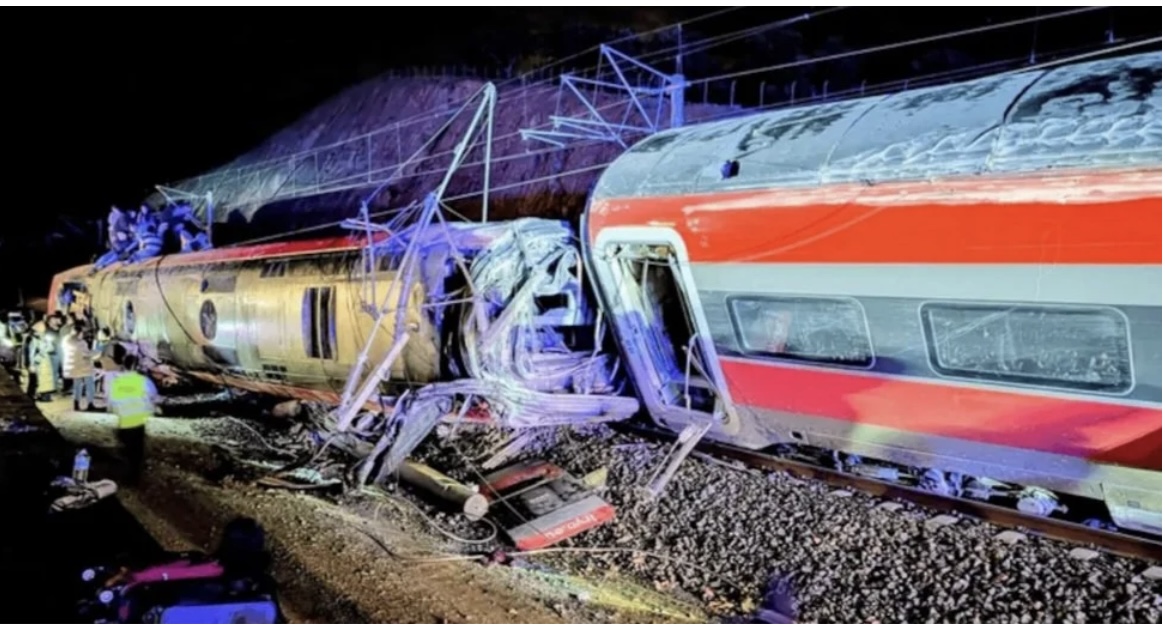 O trem noturno que fazia a rota Málaga-Madri saiu dos trilhos e colidiu com uma composição que viajava de Madri para Huelva, outra cidade do sul da Espanha, de acordo com a operadora ferroviária espanhola Adif.
