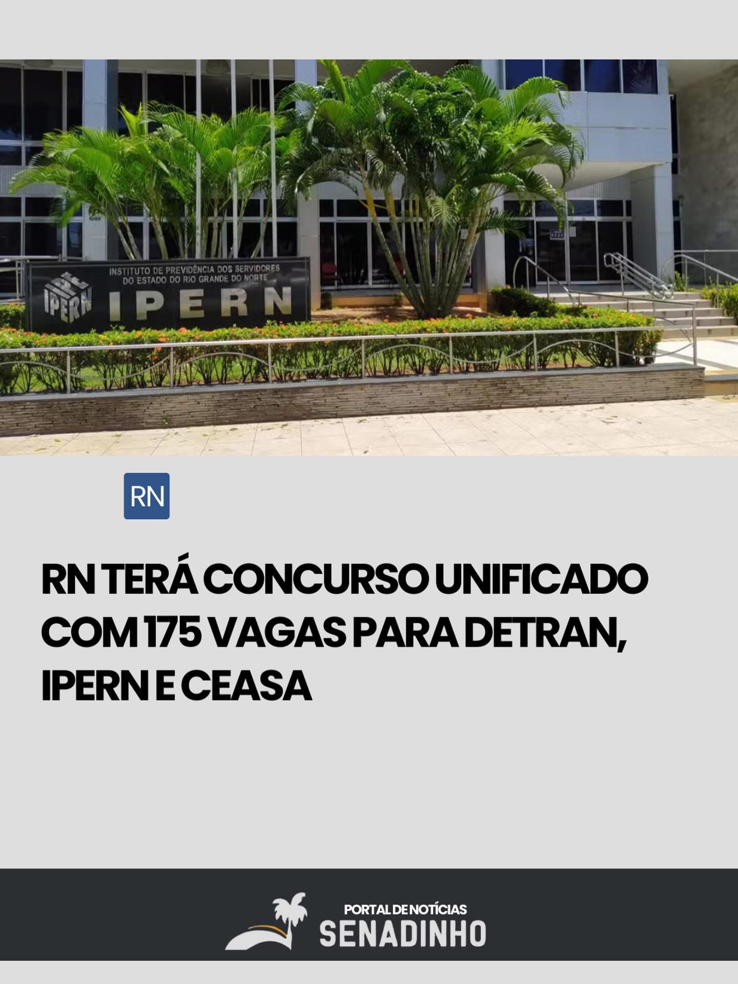 O Rio Grande do Norte terá um concurso unificado com 175 vagas, além de cadastro reserva, para o Departamento Estadual de Trânsito (Detran), para o Instituto de Previdência (Ipern) e para a Central de Abastecimento (Ceasa).