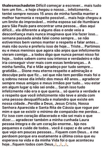 Thales era genro do prefeito Dione Araújo. Horas antes da tragédia, publicou nas redes sociais um vídeo ao lado dos filhos, com a mensagem: “Que Deus abençoe sempre meus filhos, papai ama muito”. Ele também deixou uma carta de despedida, posteriormente apagada, na qual mencionava problemas no casamento, afirmava estar emocionalmente abalado, pedia perdão à família e fazia referências religiosas.