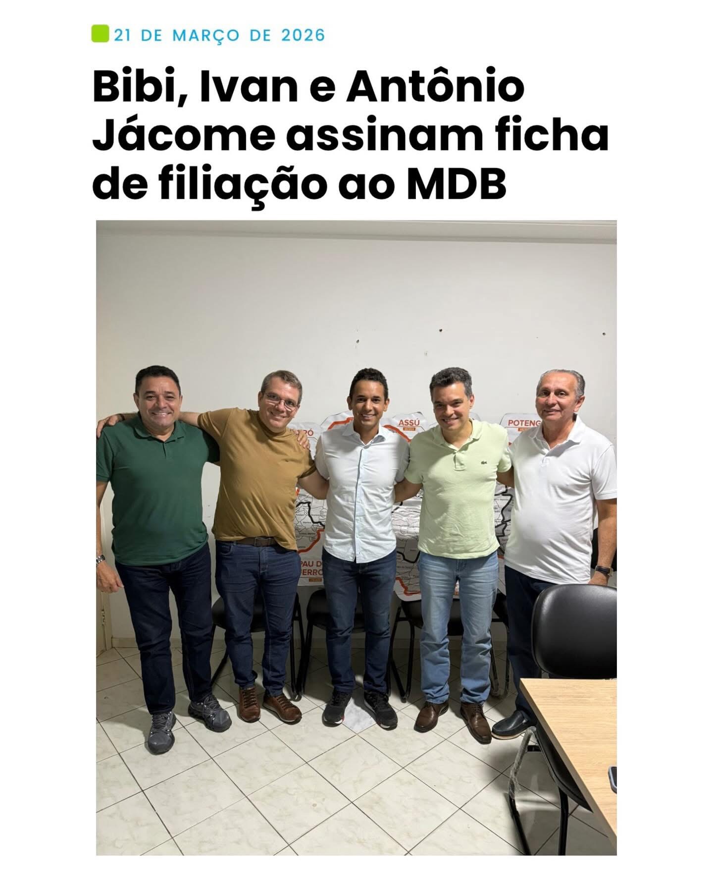 O ato contou com a presença do prefeito de Mossoró e pré-candidato ao Governo do Estado, Allyson Bezerra, reforçando o momento de articulação e fortalecimento do MDB com vistas às Eleições 2026. Bibi, Ivan e Jácome também são pré-candidatos a deputado estadual.
